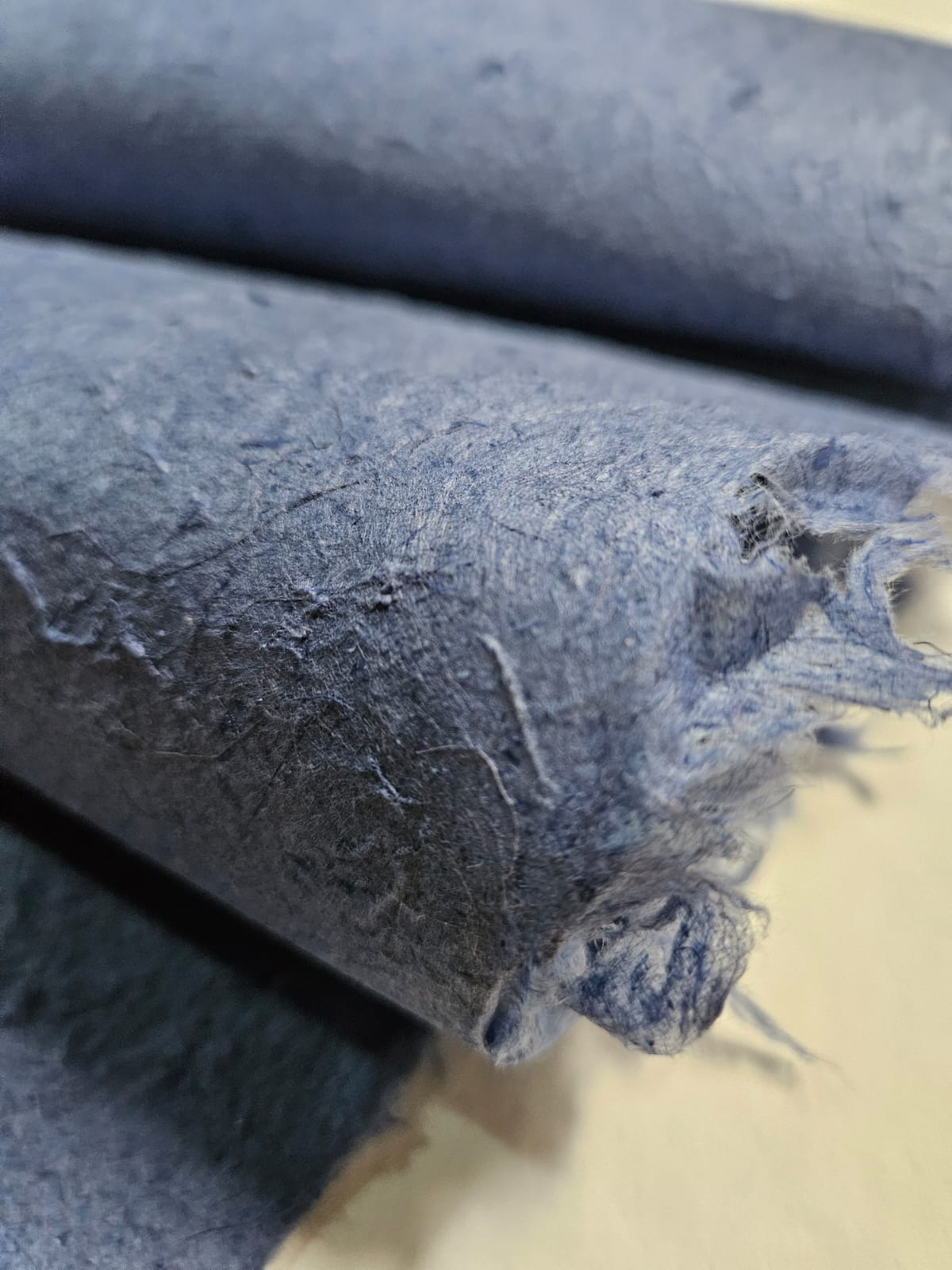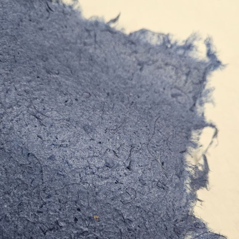 O papel artesanal Azul, mesmo em baixa gramatura, apresenta alta resistência mecânica, o que o torna um papel interessante para revestimento. Também aceita processos de impressão como serigrafia e hotstamping.