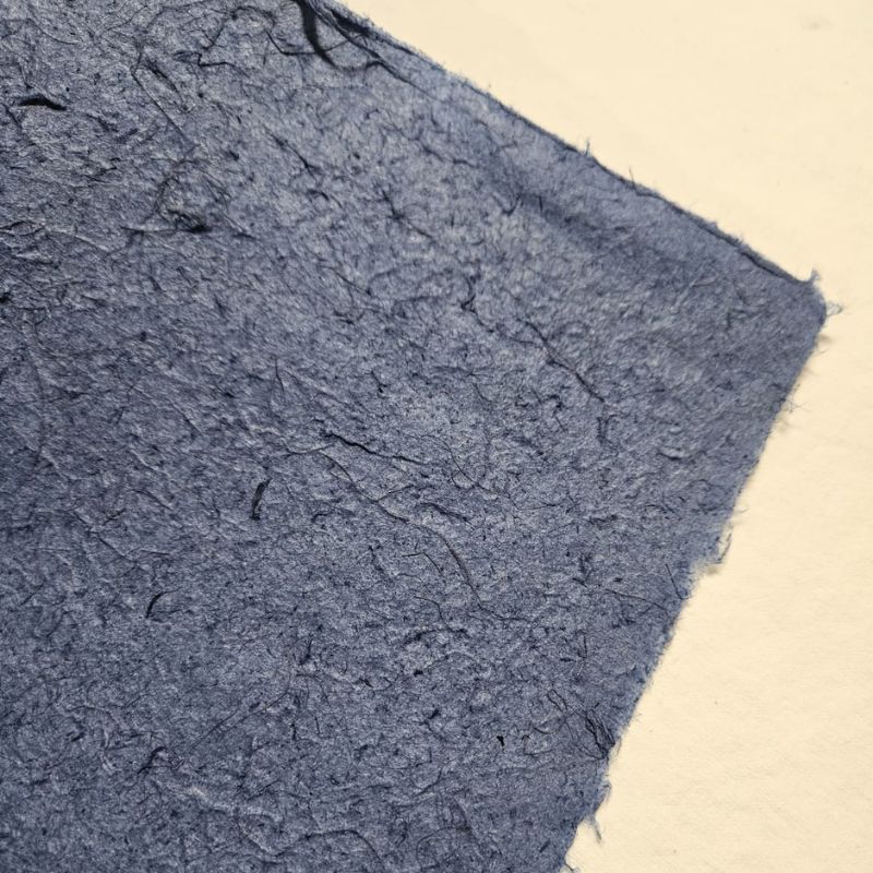 Papel artesanal Catavento Azul, feito a partir de 100% de fibra de bananeira, colorido, no tamanho A2+ em 75g.