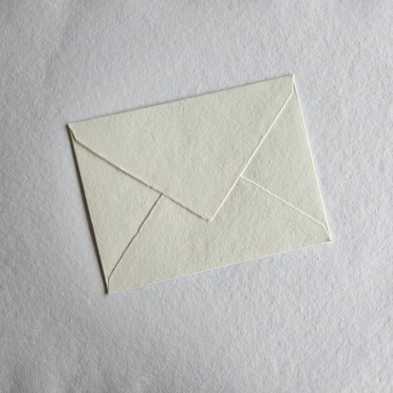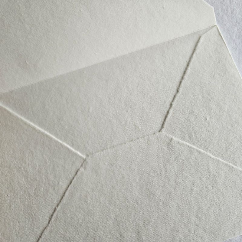Envelope feito em papel artesanal Carinhoso 250g (100% algodão) com cortes manuais feitos à água.