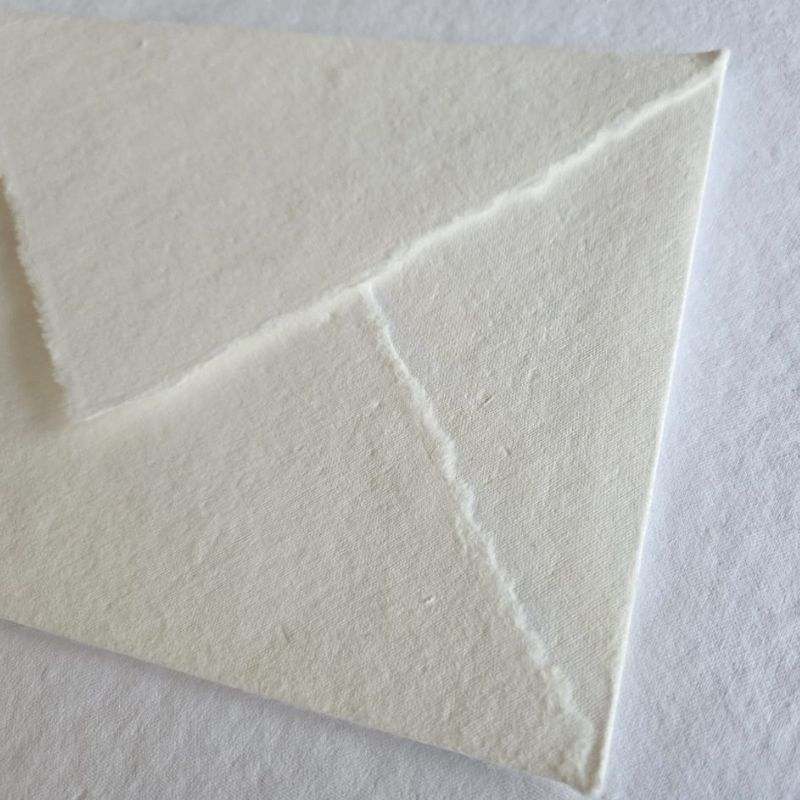 Envelope feito em papel artesanal Carinhoso 250g (100% algodão) com cortes manuais feitos à água.