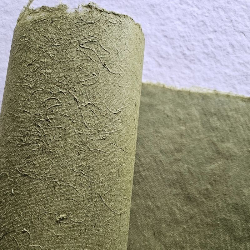 Papel artesanal Catavento Verde, feito a partir de 100% de fibra de bananeira, colorido, no tamanho A2+ em 35g.