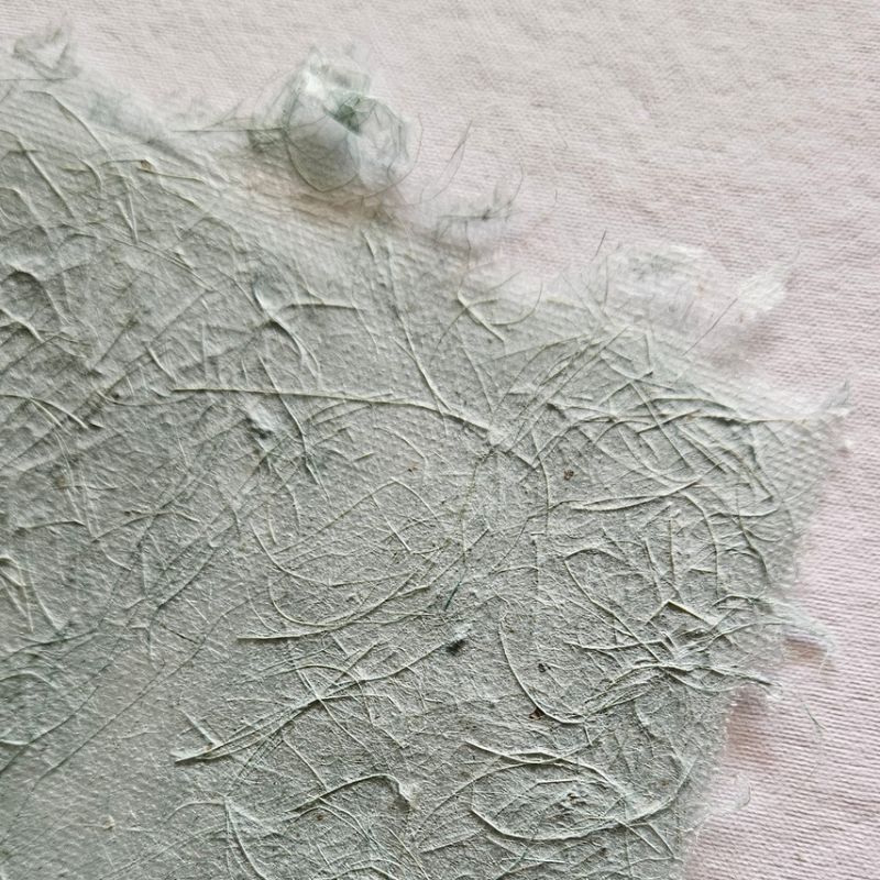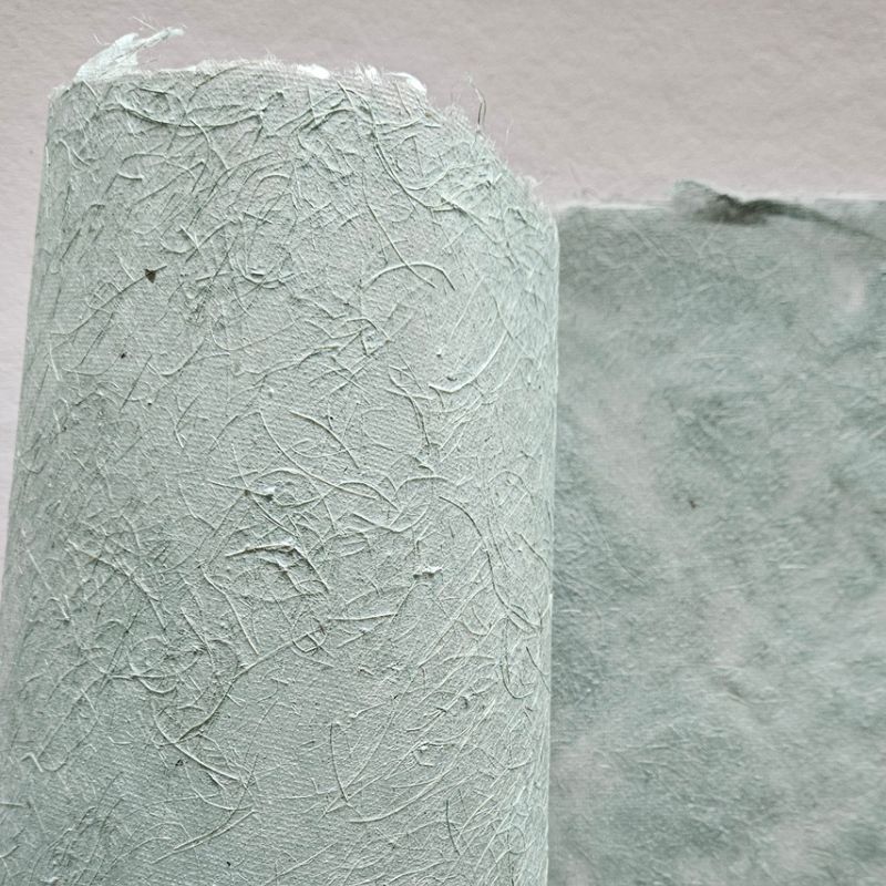 Papel artesanal Catavento Verde Água, feito a partir de 100% de fibra de bananeira colorida, no tamanho A2+ em 12g.