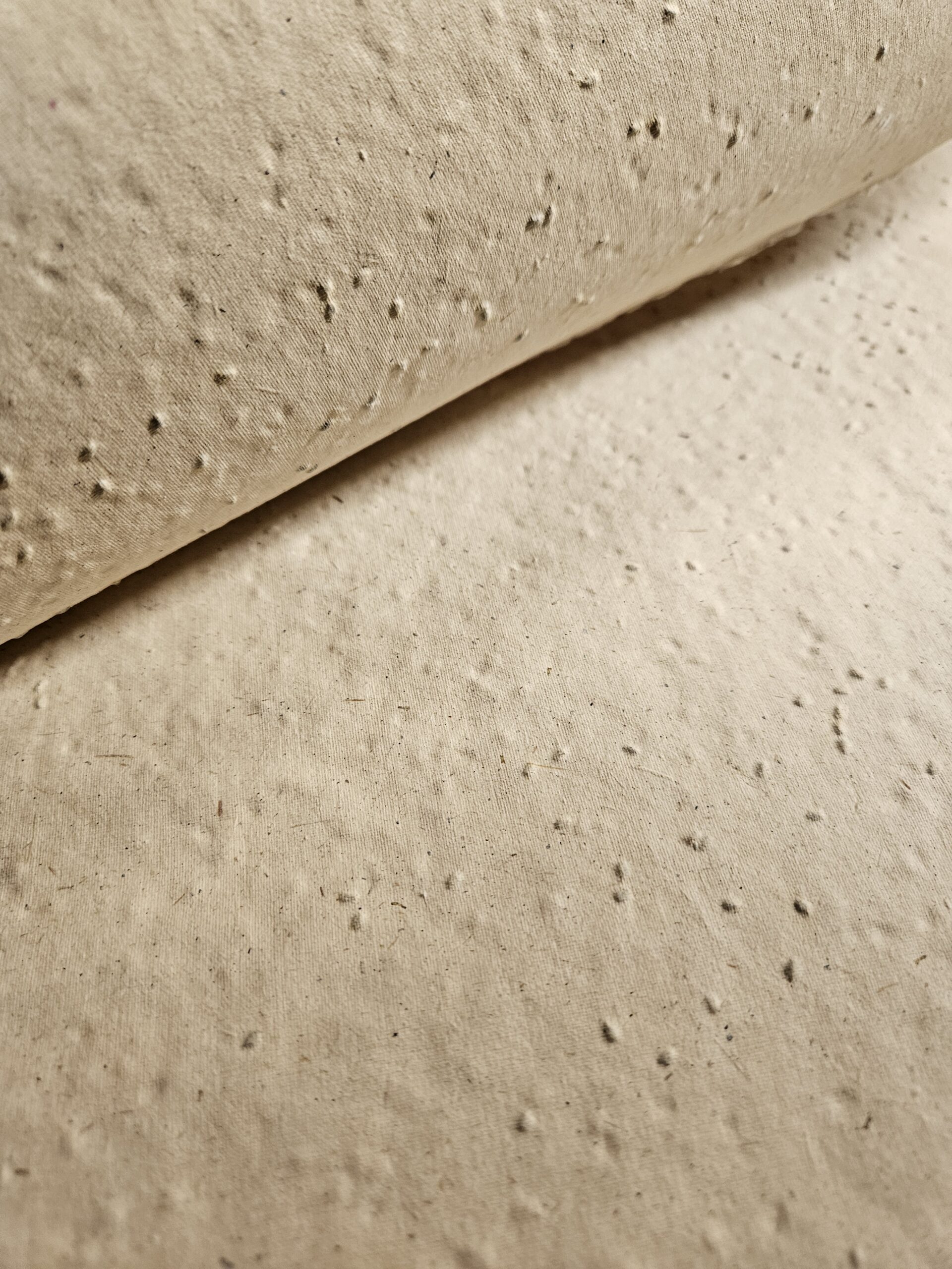 Por conter sementes em sua composição, este papel apresenta delicadas irregularidades na superfície.