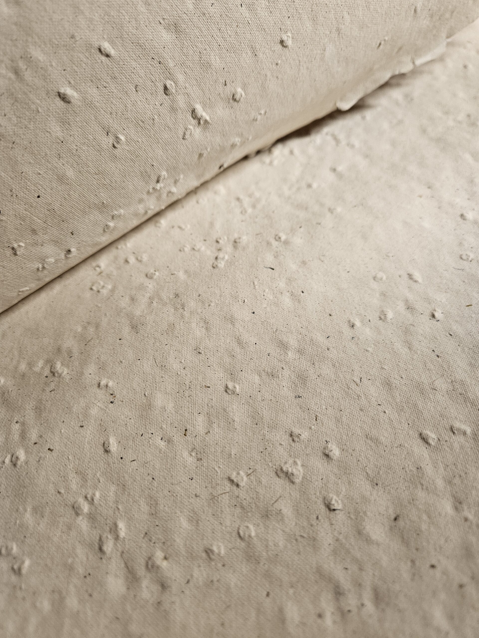 Por conter sementes em sua composição, este papel apresenta delicadas irregularidades na superfície.